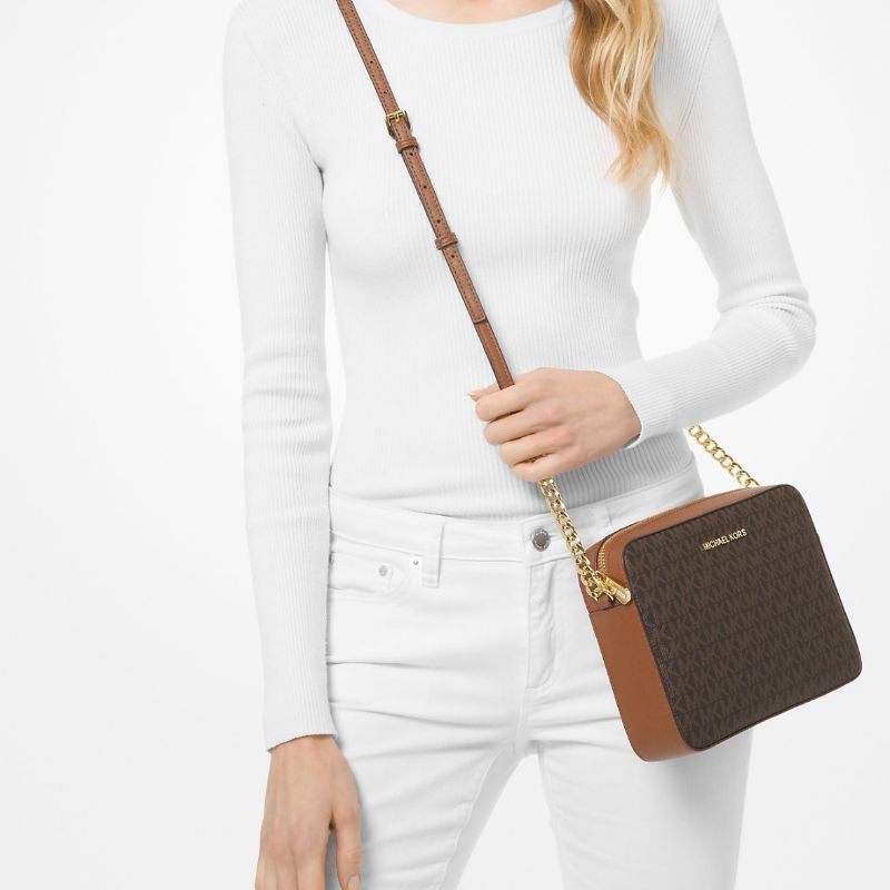 Con una silueta de líneas limpias y nuestra lona con el logotipo de la firma, el bolso cruzado Jet Set es un clásico instantáneo. Los herrajes en tono dorado reflejan una sensibilidad de lujo, mientras que un interior espacioso ofrece una fácil organización para sus elementos esenciales.