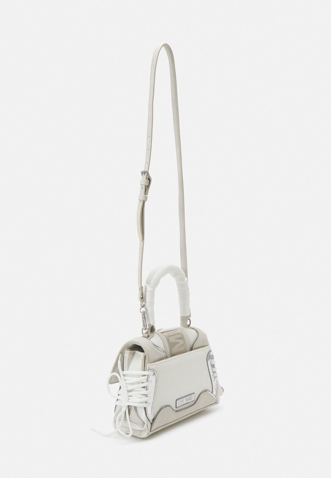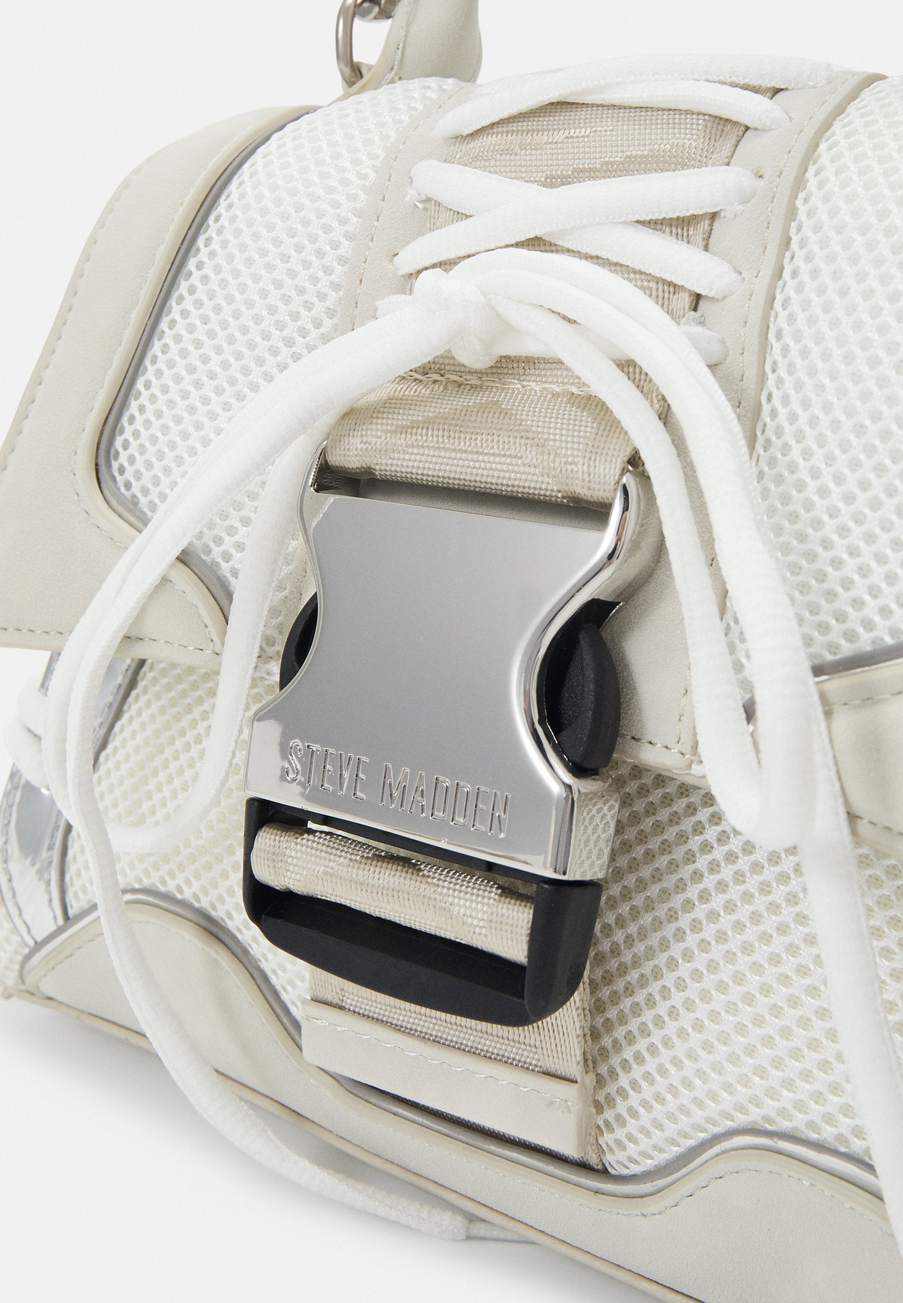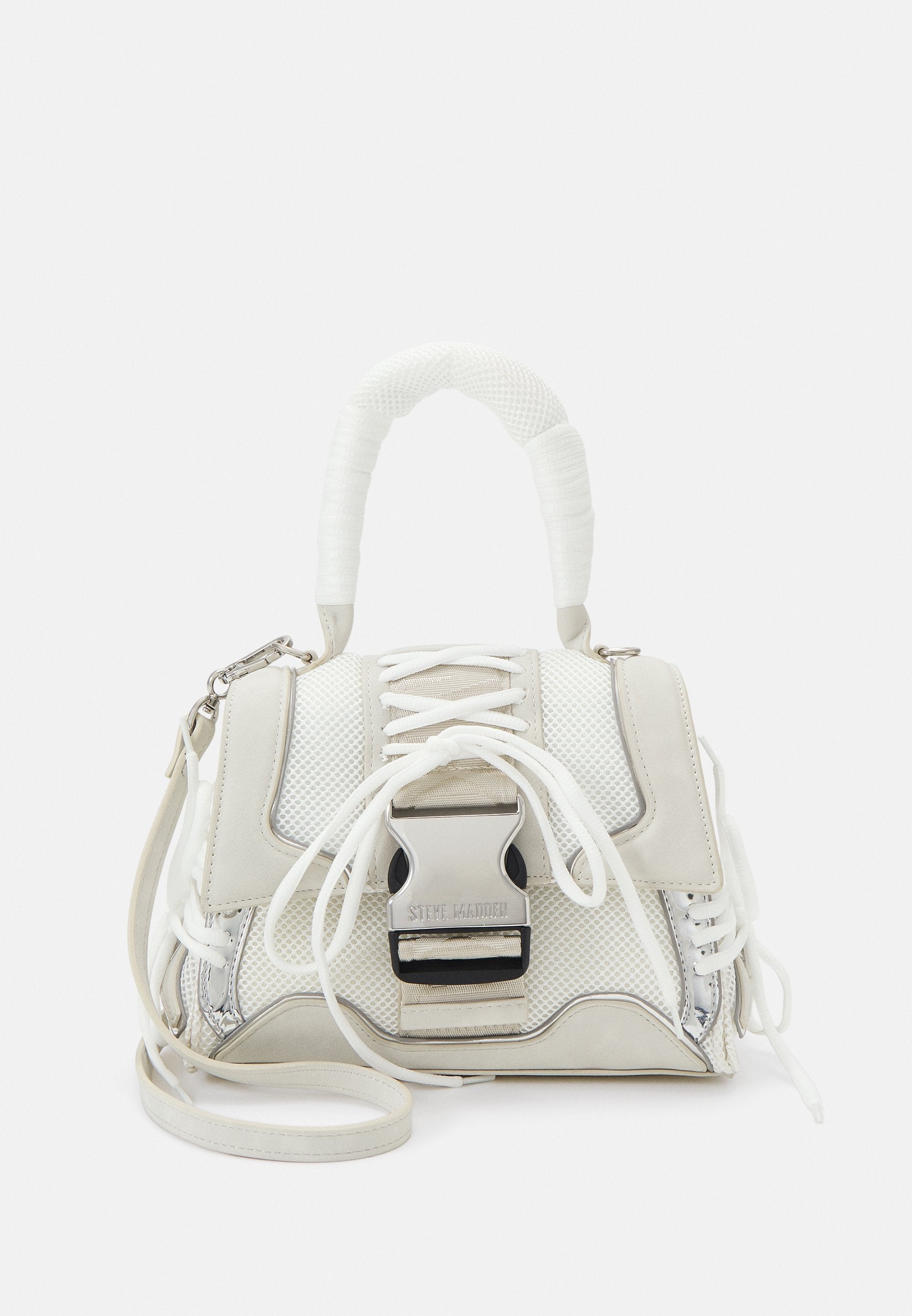 Bolso bandolera de mujer de Steve Madden, confeccionado en materiales sintéticos. Cuenta con una correa de hombro ajustable y desmontable, un asa fija para llevar en la mano, un compartimento principal y cierre con solapa y broche. Su superficie está decorada con finos cordones.
